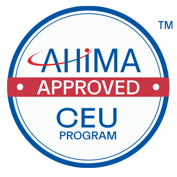 AHIMA-Approved ACEP Credits: "This program has been approved for 12 continuing education units (CEUs) for use in fulfilling the continuing education requirements of the American Health Information Management Association (AHIMA). Granting prior approval from AHIMA does not constitute endorsement of the program content or its program sponsor."